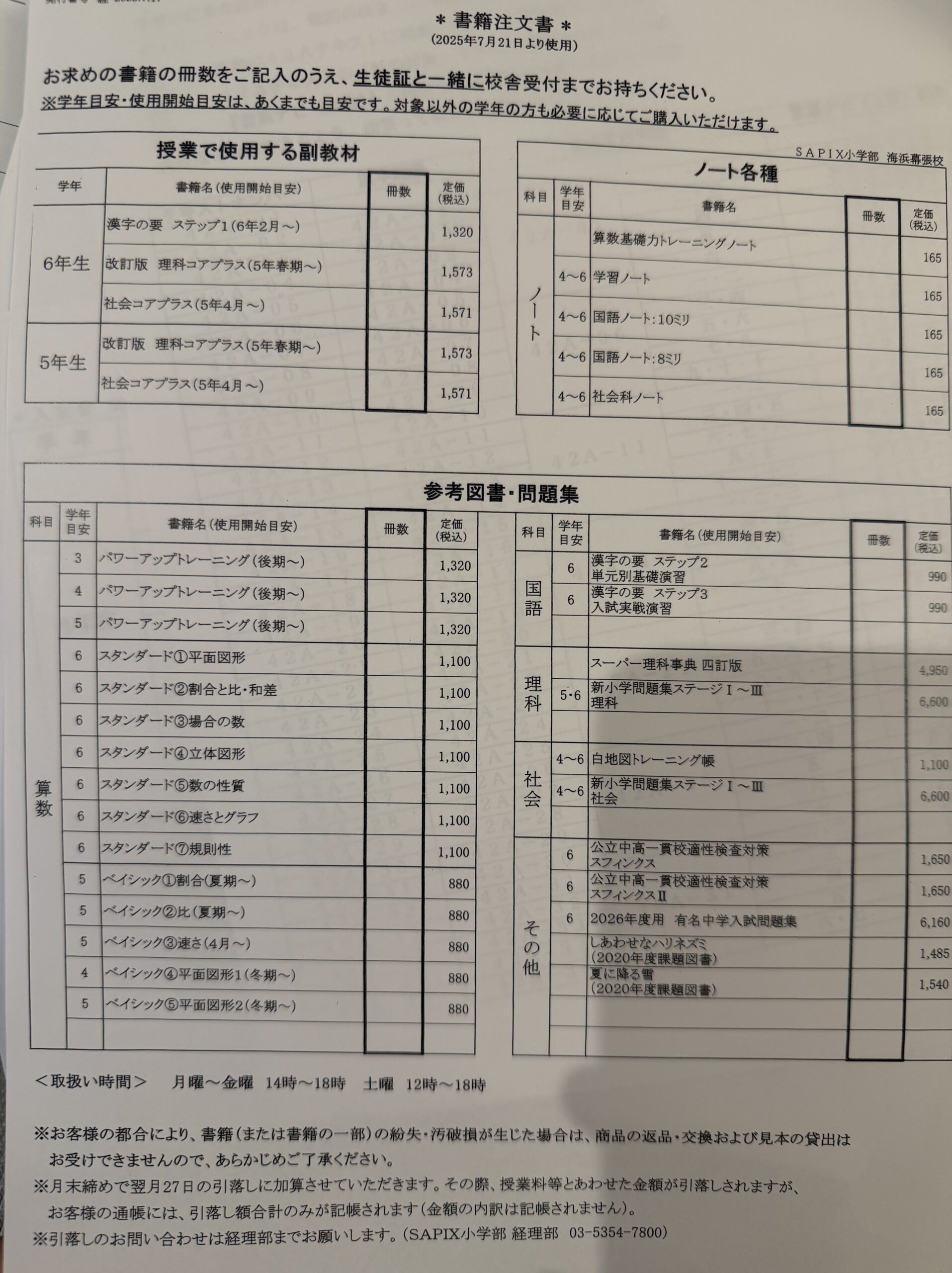 建前としては『必要ならば買ってください』というものですが、SAPIXの副教材(参考図書・問題集)は実質必須です。